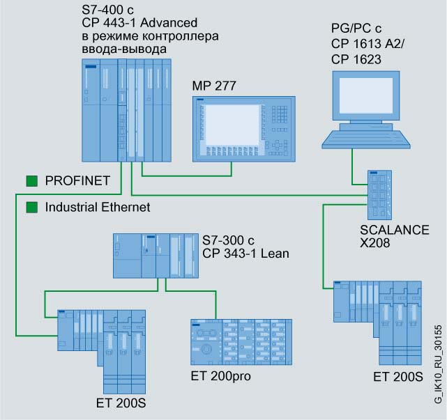 Пример конфигурации CP 343-1 Lean в качестве устройства PROFINET IO