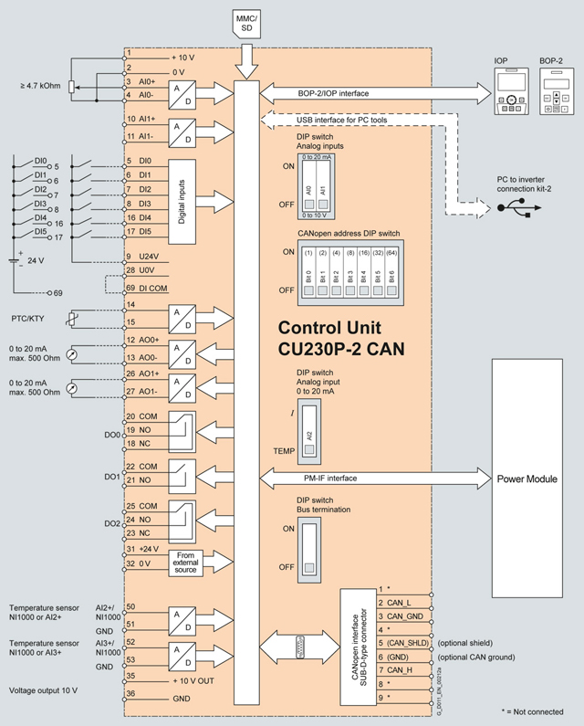 Диаграмма подключения модуля управления CU230P 2 CAN