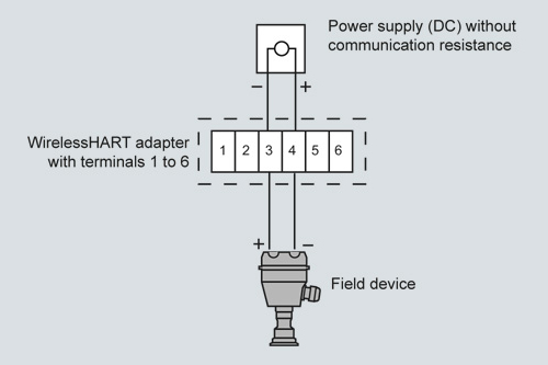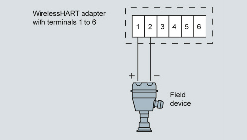Подключение двухпроводного полевого прибора, питание обеспечивается за счет адаптера