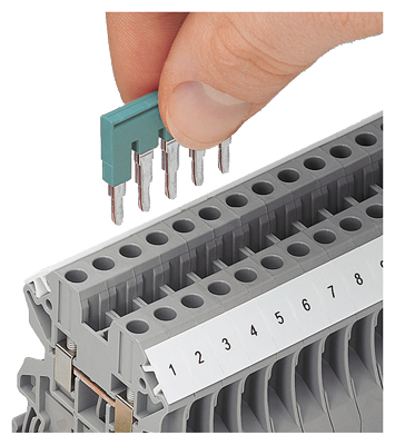 Для переноса питания на разные типоразмеры клемм используются мостики с различными сечениями.