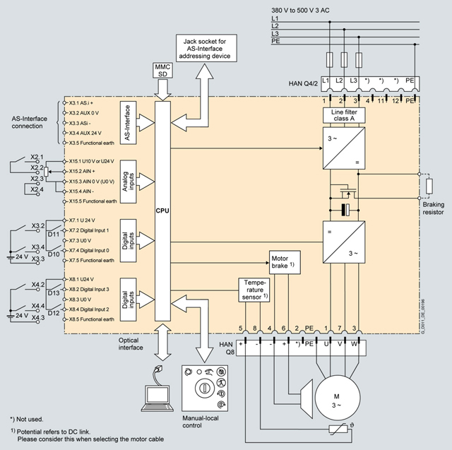 SINAMICS G110D со встроенным фильтром класса А, диаграмма подключения
