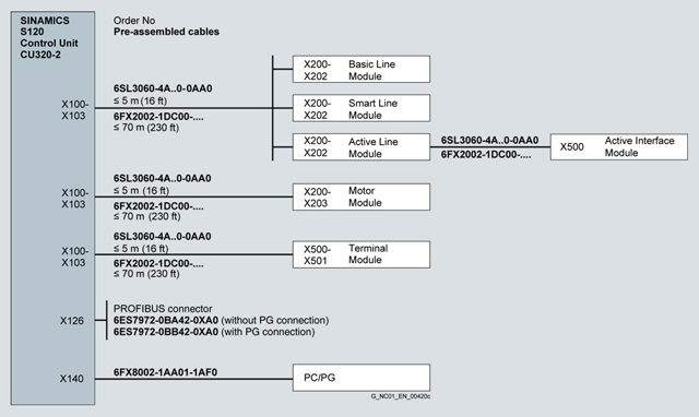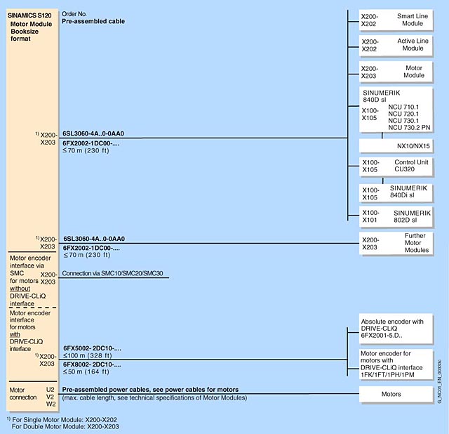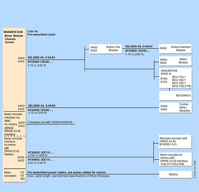 Кабели DRIVE-CLiQ типа 6SL3060-4A..0-0AA0 требуются для стандартной конфигурации и являются частью заказа Модулей питания или двигательных модулей. В этом случае модули должны быть расположены в ряд один за одним.