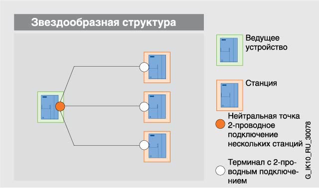Через последовательный интерфейс RS 485 к одному коммуникационному модулю TIM может быть подключено несколько модемов MD2. Этот вид соединения используется в тех случаях, когда к одному порту WAN модуля TIM необходимо подключить несколько выделенных линий связи. Например, для построения звездообразной сетевой структуры.