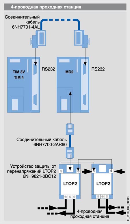Ниже приводятся примеры подключения терминалов и точек ответвления. Соединительный кабель 6NH7 700-2AR60 входит в комплект поставки модема MD2.