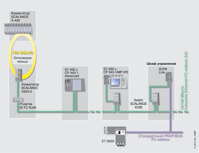 Структура сети с SCALANCE X204-2