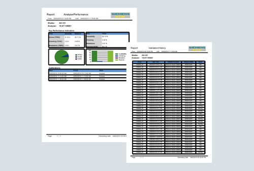 This is a comprehensive function for producing customized reports. The module permits analysis of current and historical data in selectable time periods for documentation of the performance of individual analyzers up to the complete plant using the reporting module. The reports can be saved in the ASM or exported for further use. |