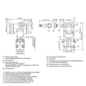 SITRANS P DS III pressure transmitters for differential pressure and flow, dimensions in mm (inch)