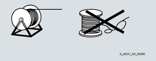 The cables must be removed from the drum without twisting, i.e. the cables must be unwound and must never be lifted over the drum flange in loops.
