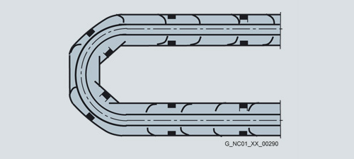 The cables must be able to be moved without applying force in particular in the bending radii of the carrier. The specified minimum bending radii must be adhered to.
