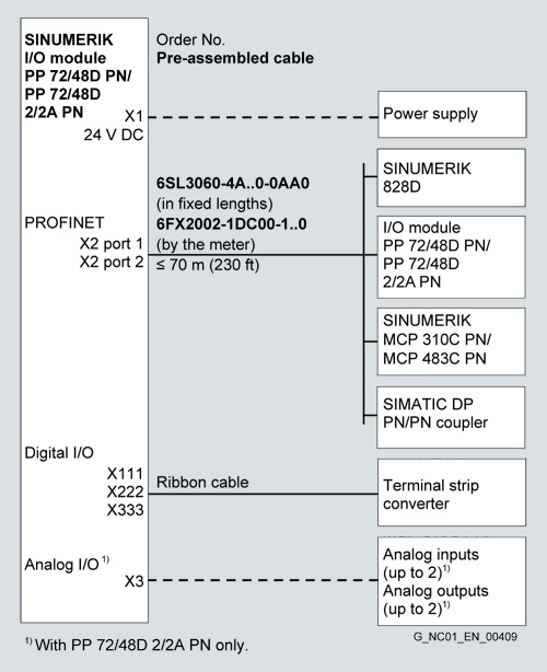 Connection overview of SINUMERIK I/O modules PP 72/48D PN and PP 72/48D 2/2A PN