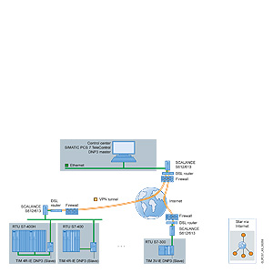 Example of secure TCP/IP-based connection over the Internet via DSL (star topology)