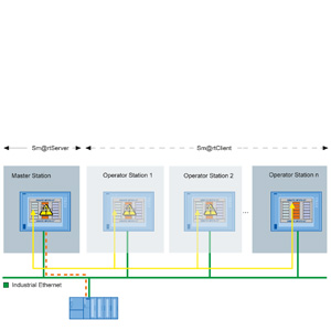 • Системы SIMATIC HMI могут быть использованы для дистанционного управления и мониторинга других систем, на начальном уровне клинт-серверных конфигураций, в приложениях с единым диспетчерским пунктом.