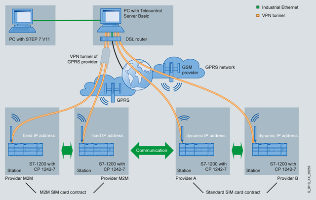 В сочетании с программным обеспечением "Telecontrol Server Basic" модуль CP 1242-7 позволяет создавать системы телеуправления, поддерживающие обмен данными через мобильные беспроводные сети.
