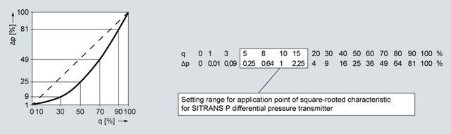 The orifice plate has a square-law relationship between differential pressure and flow. A square-root transmitter is required therefore to create a linear flow characteristic.