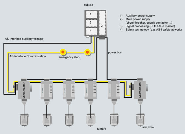 Для коммуникации по AS-Interface используеится специальный двухпроводной кабель AS-Interface: