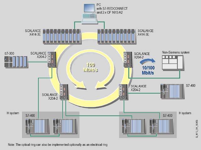 Redundant optical ring for connection of high-availability systems