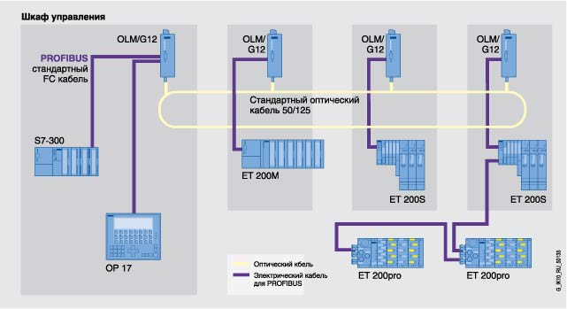 - Магистральная, кольцевая или звездообразная топология, базирующаяся на применении оптических модулей связи OLM.